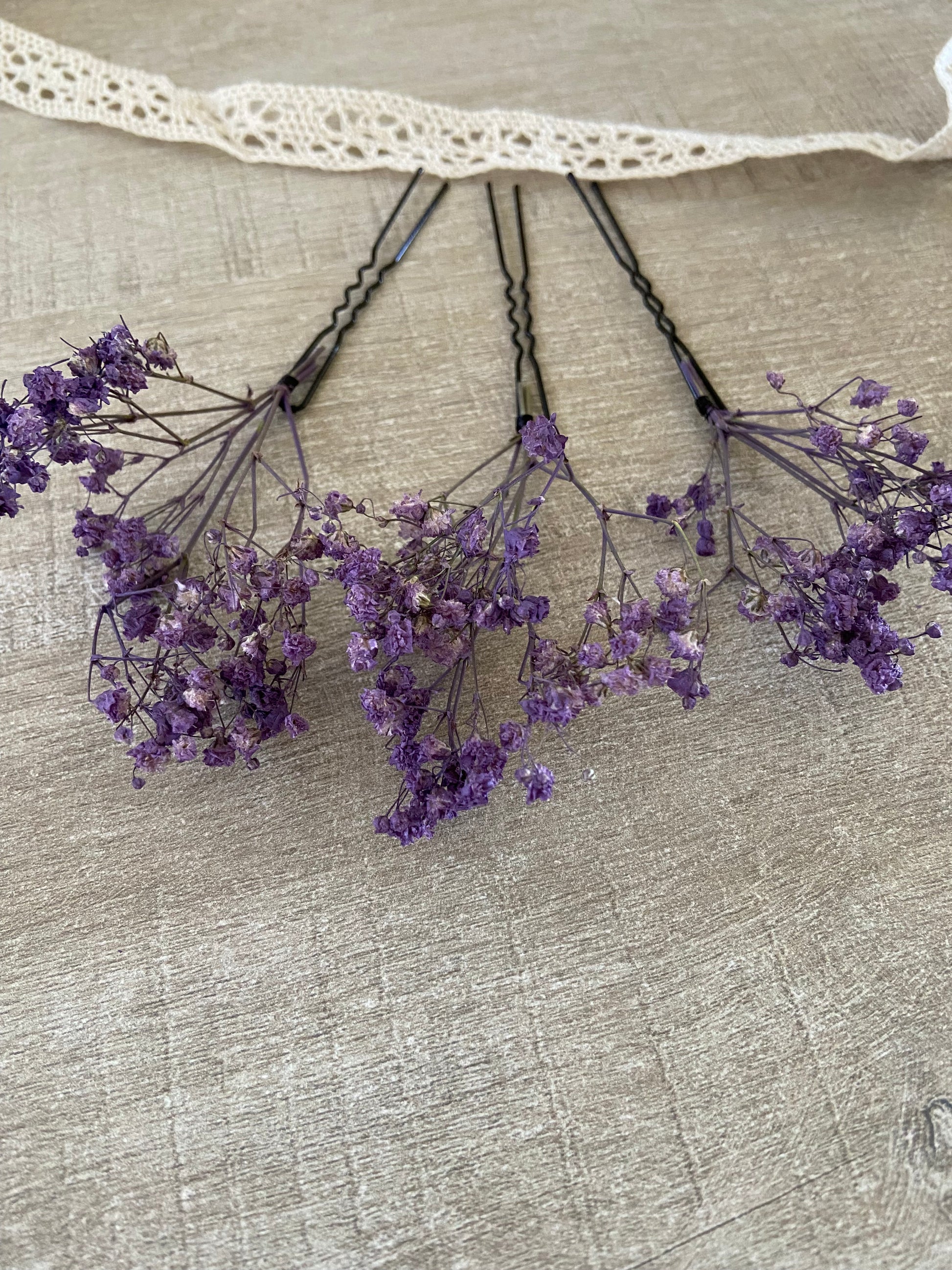 3 epingles chignon mariee gypsophile violet fleurs séchées fleurs stabilisées Accessoires coiffure mariage