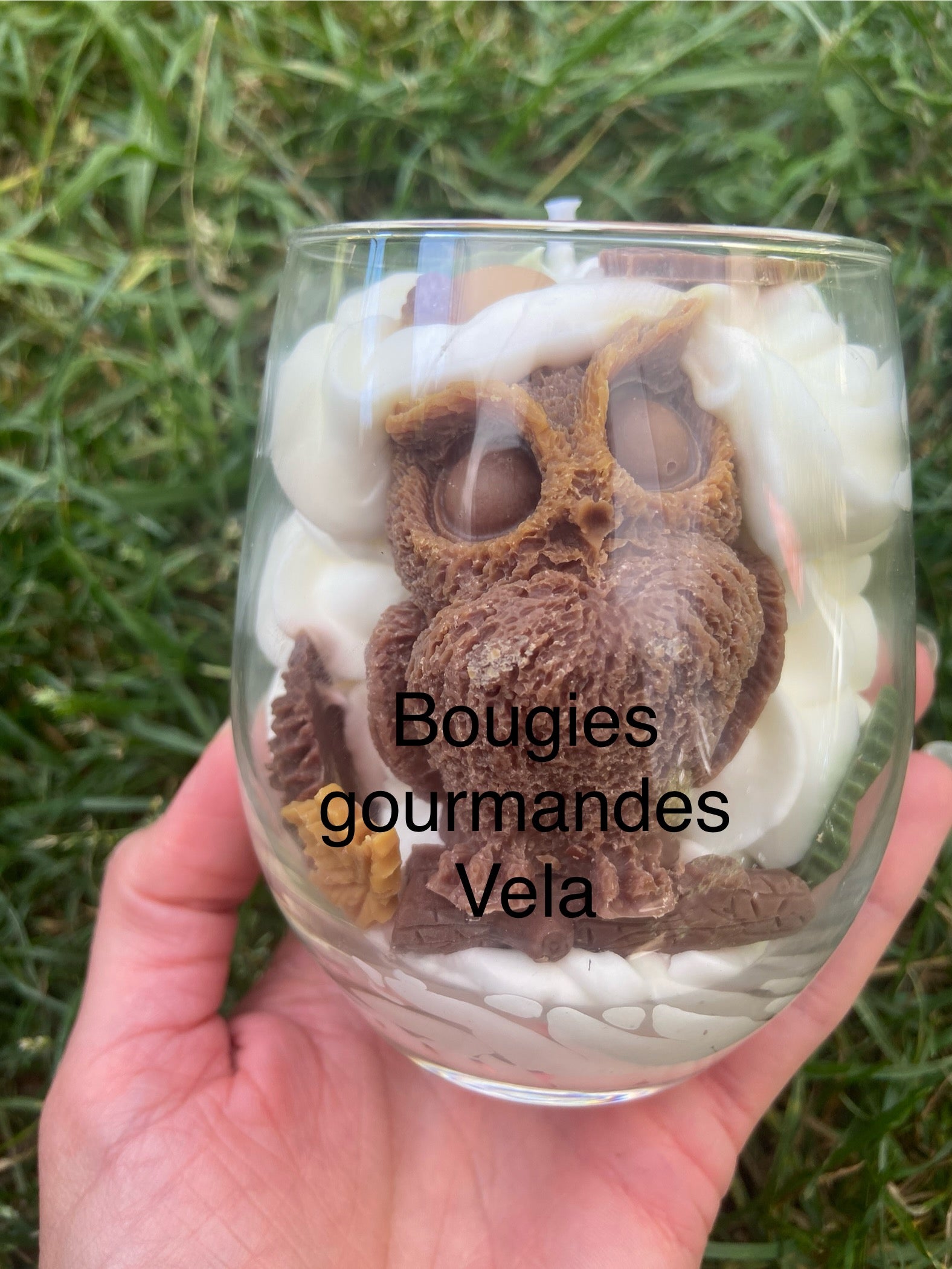 Bougie gourmande Bougie hibou Bougie parfumée vanille Bougie chantilly Bougie automne Bougie artisanale Bougie végétale Idée cadeau