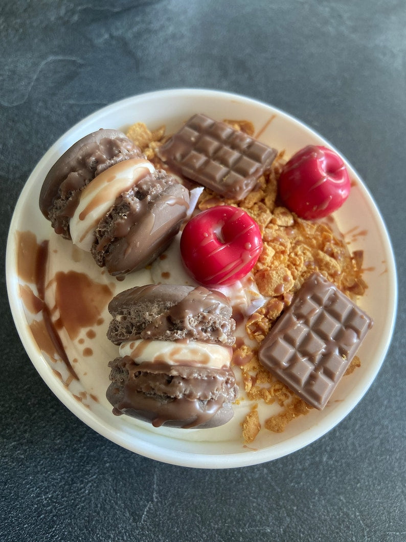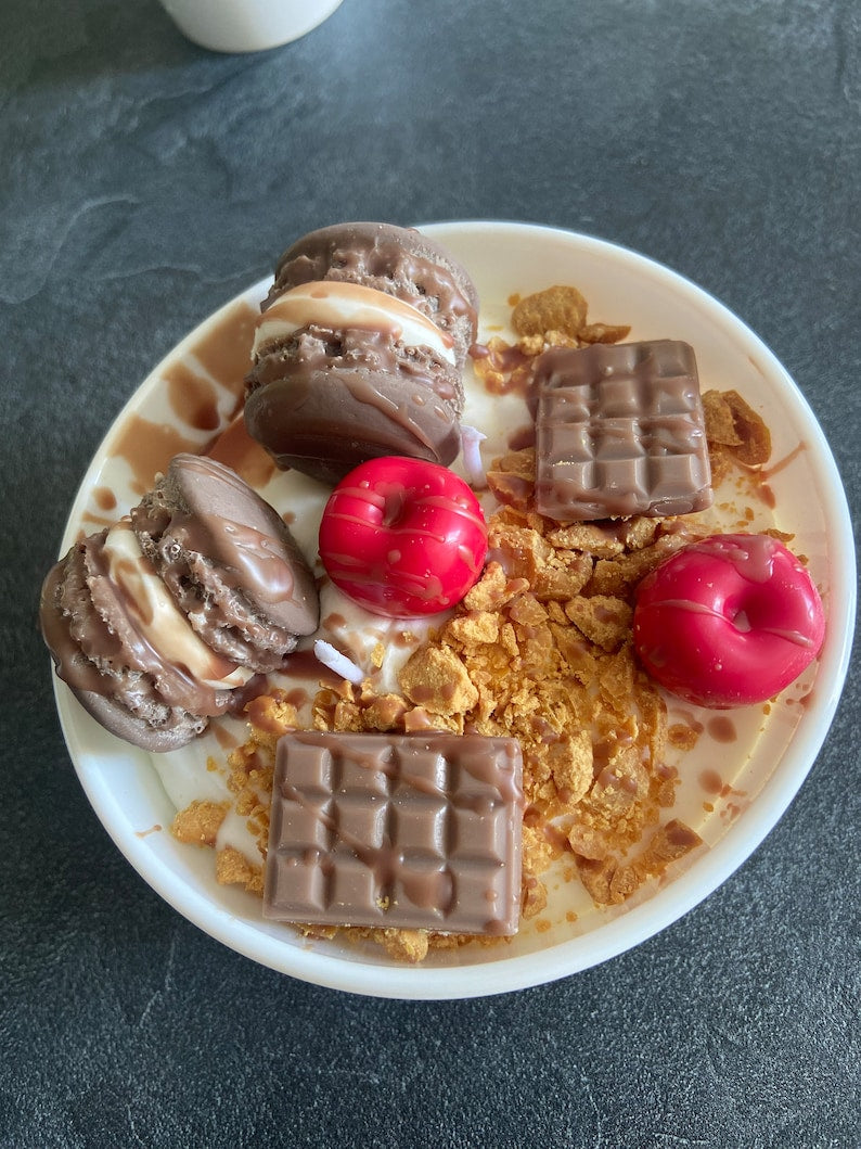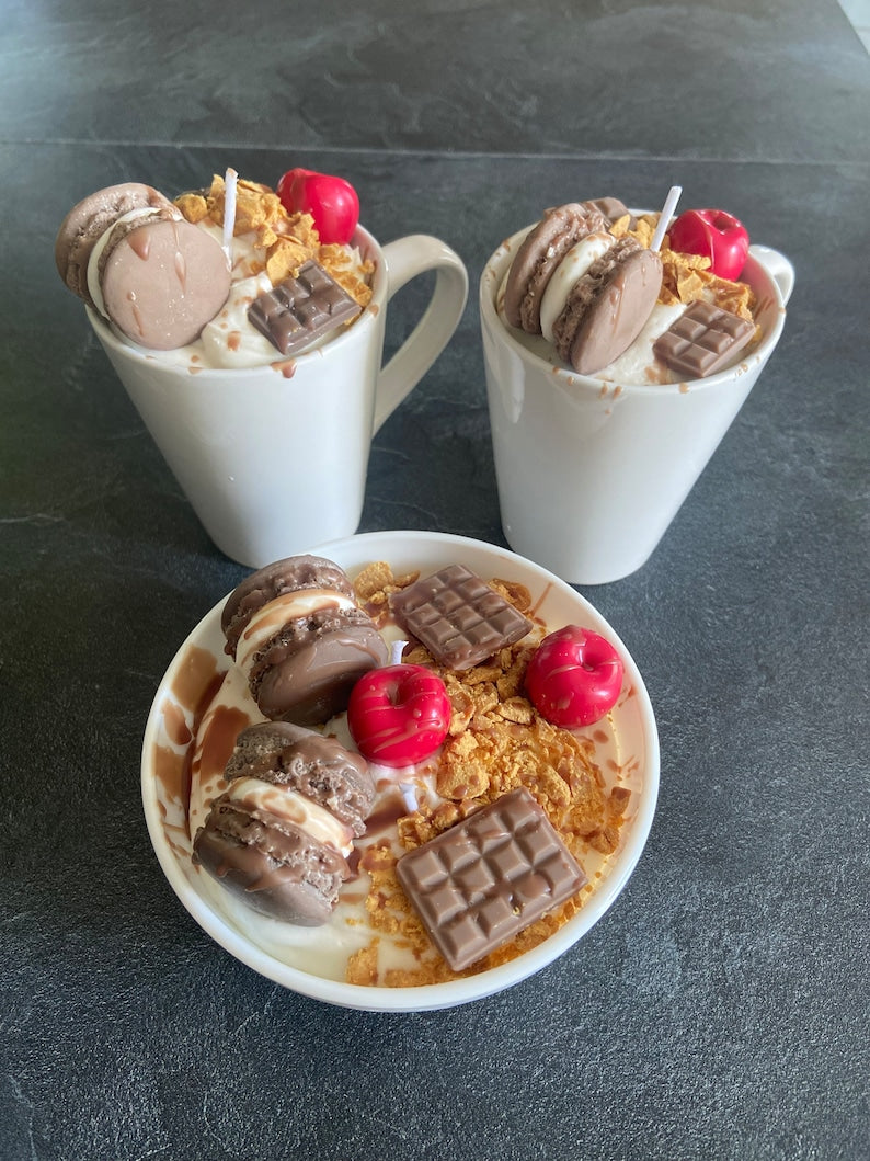 Bougie gourmande Bougie parfumée chocolat praliné Bougie chantilly Bougie artisanale Bougie végétale Bougie bowl macarons Idée cadeau