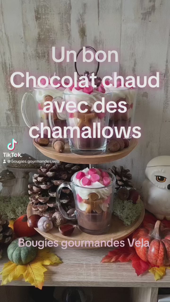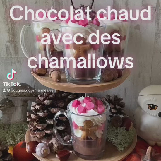 Bougie gourmande chocolat chaud marshmallow Bougie parfumée chocolat praliné Bougie chantilly Bougie artisanale Bougie végétale Idée cadeau noel