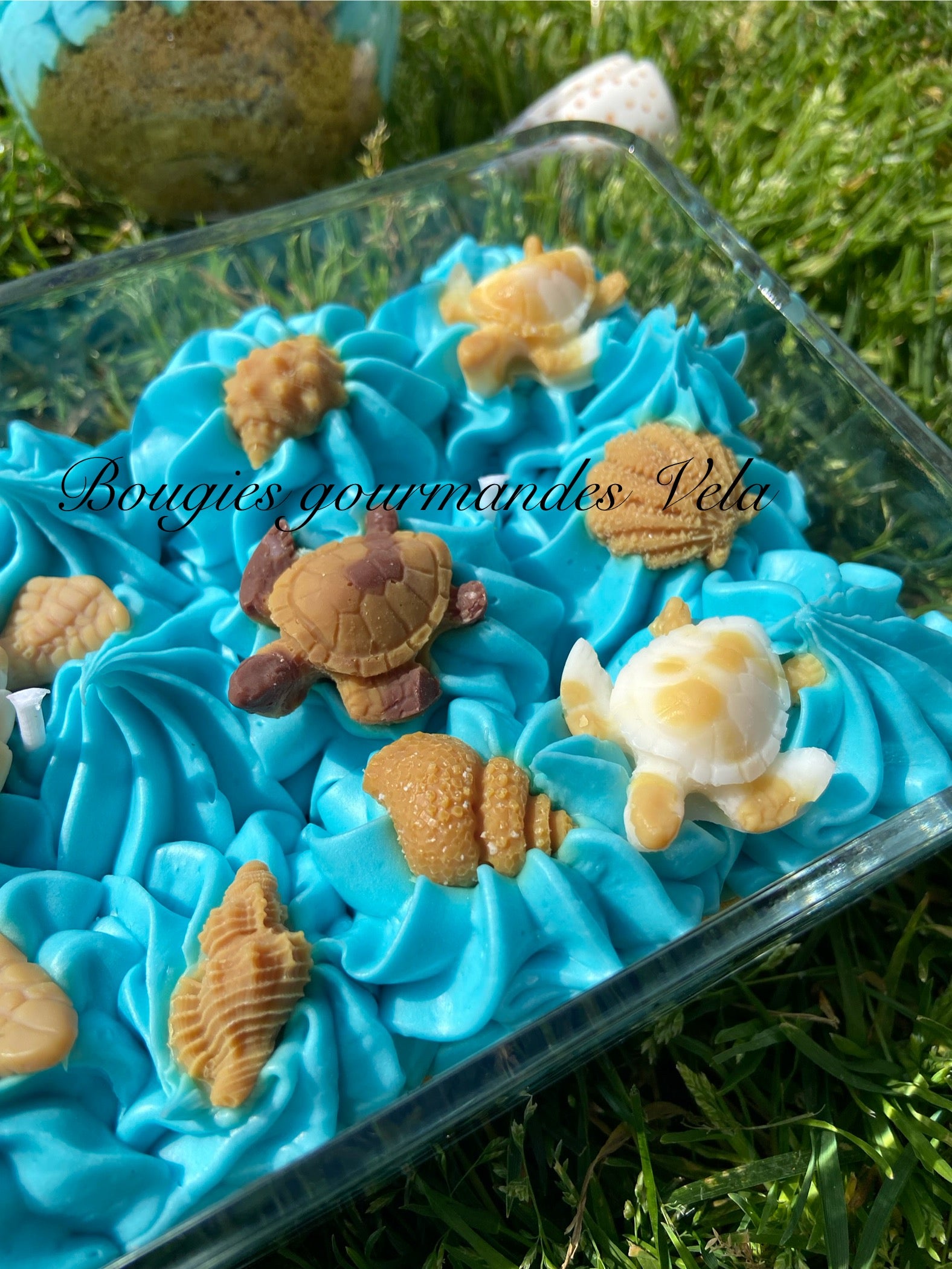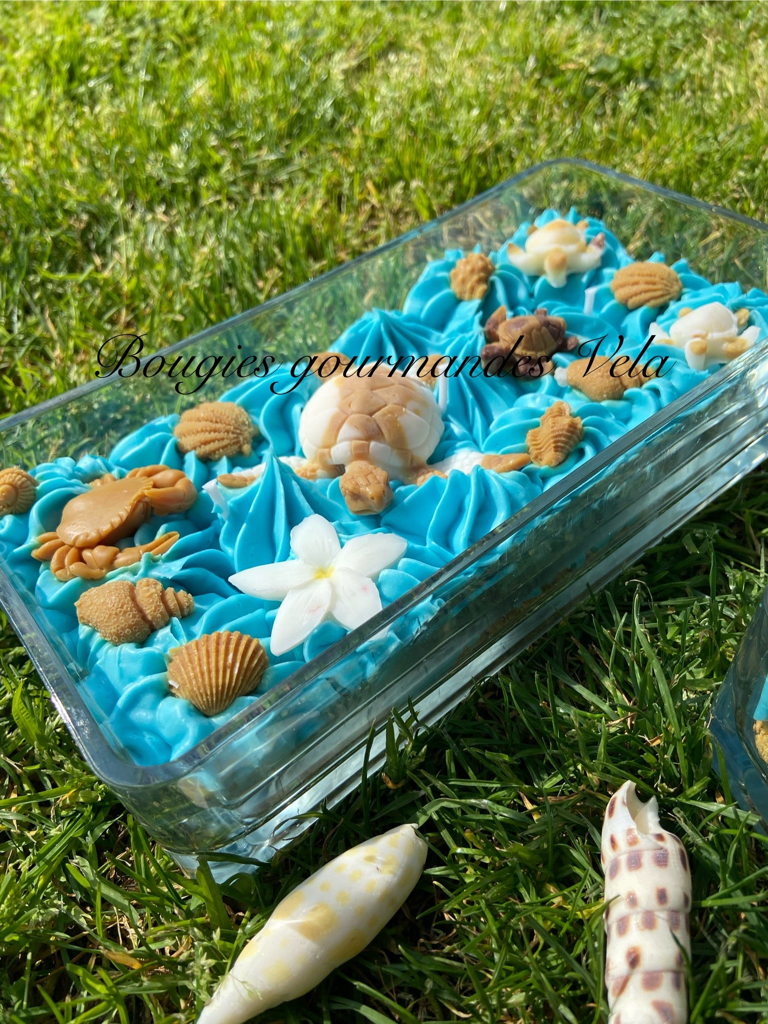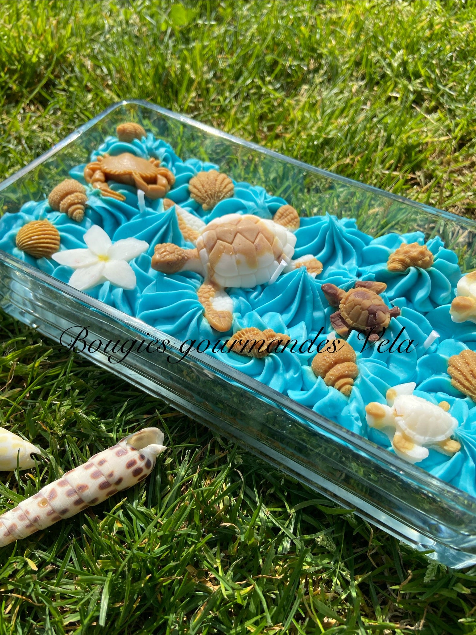 Grosse bougie chantilly monoi tortue coquillages Bougie parfumée monoï Bougie chantilly Bougie artisanale Bougie végétale Idée cadeau