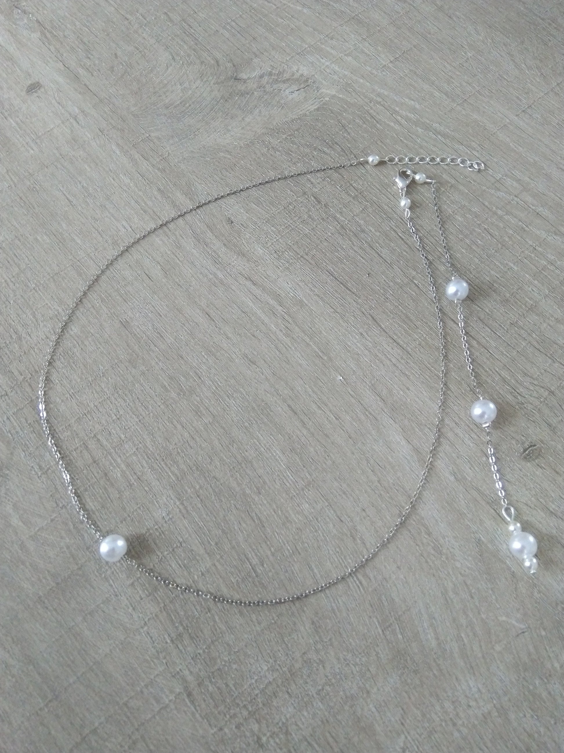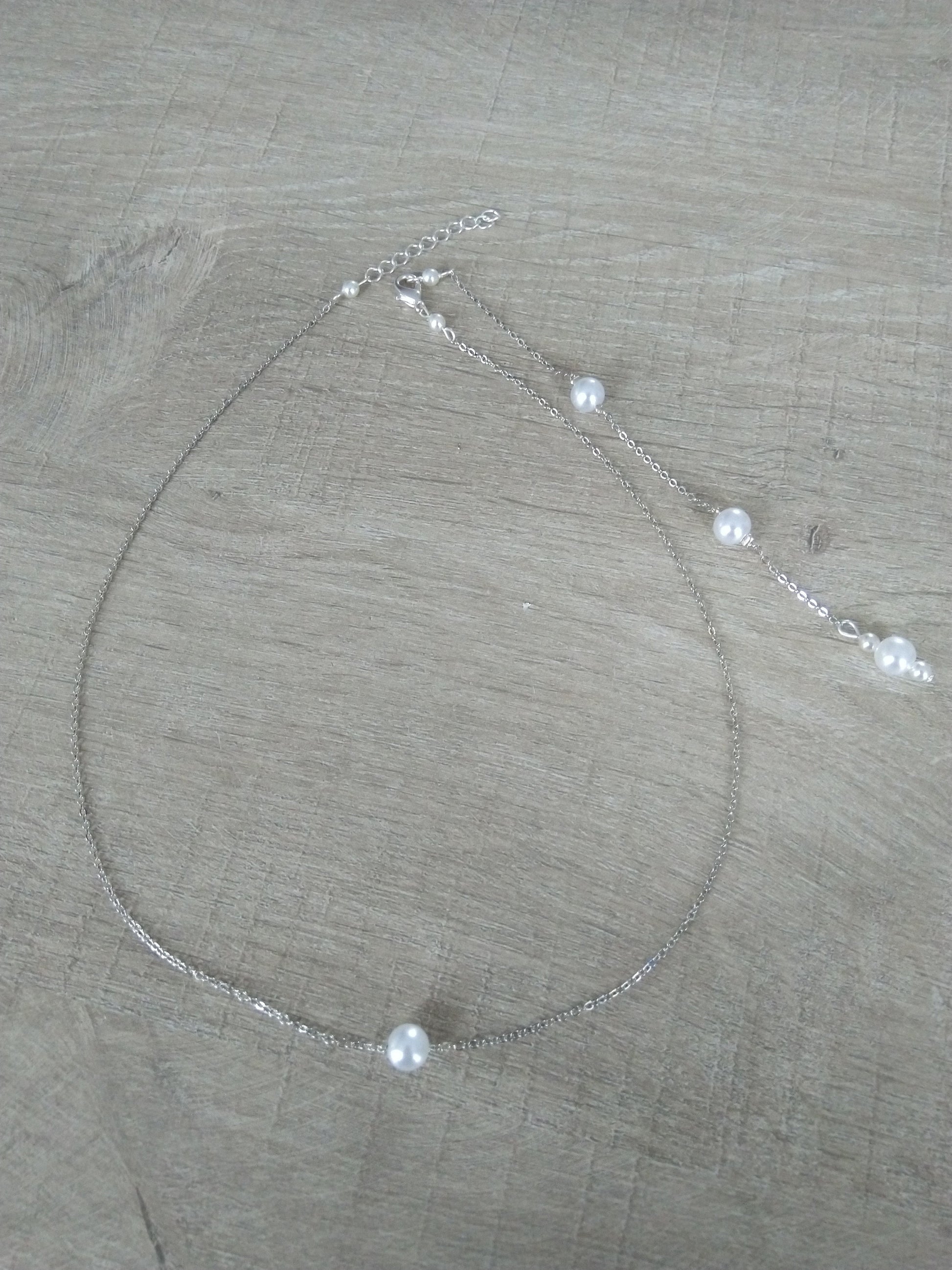 Collier mariee Collier de dos perles nacrées blanches chaine fine argentée Bijoux mariage Bijoux mariee