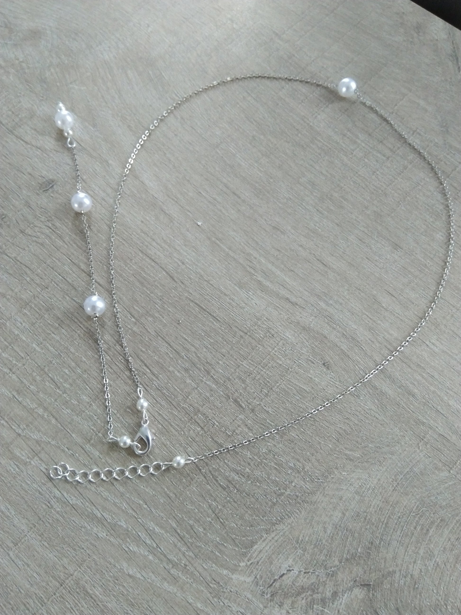 Découvrez ce joli collier composé de perles nacrées blanches sur une fine chaîne argentée.