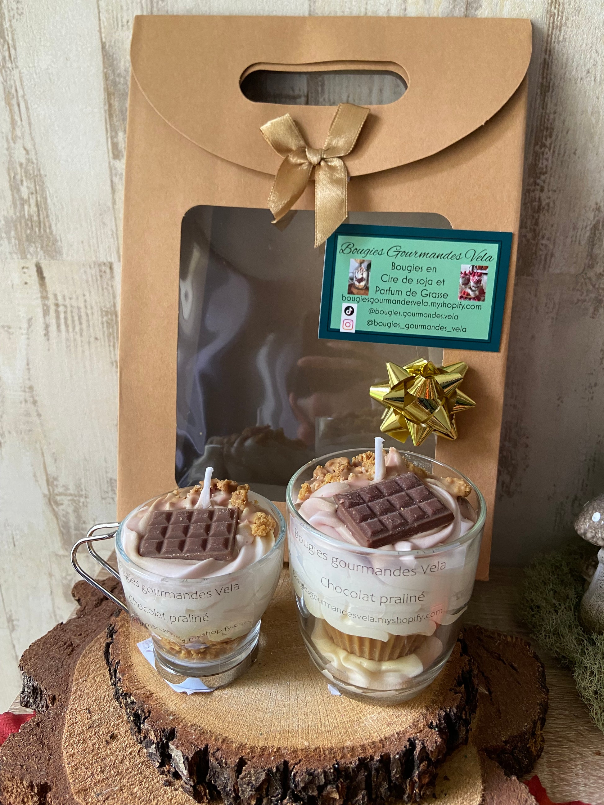 Coffret Bougie gourmande et Mini Bougie gourmande Bougie parfumée chocolat praliné Bougie chantilly Bougie artisanale Bougie végétale Idée cadeau noel