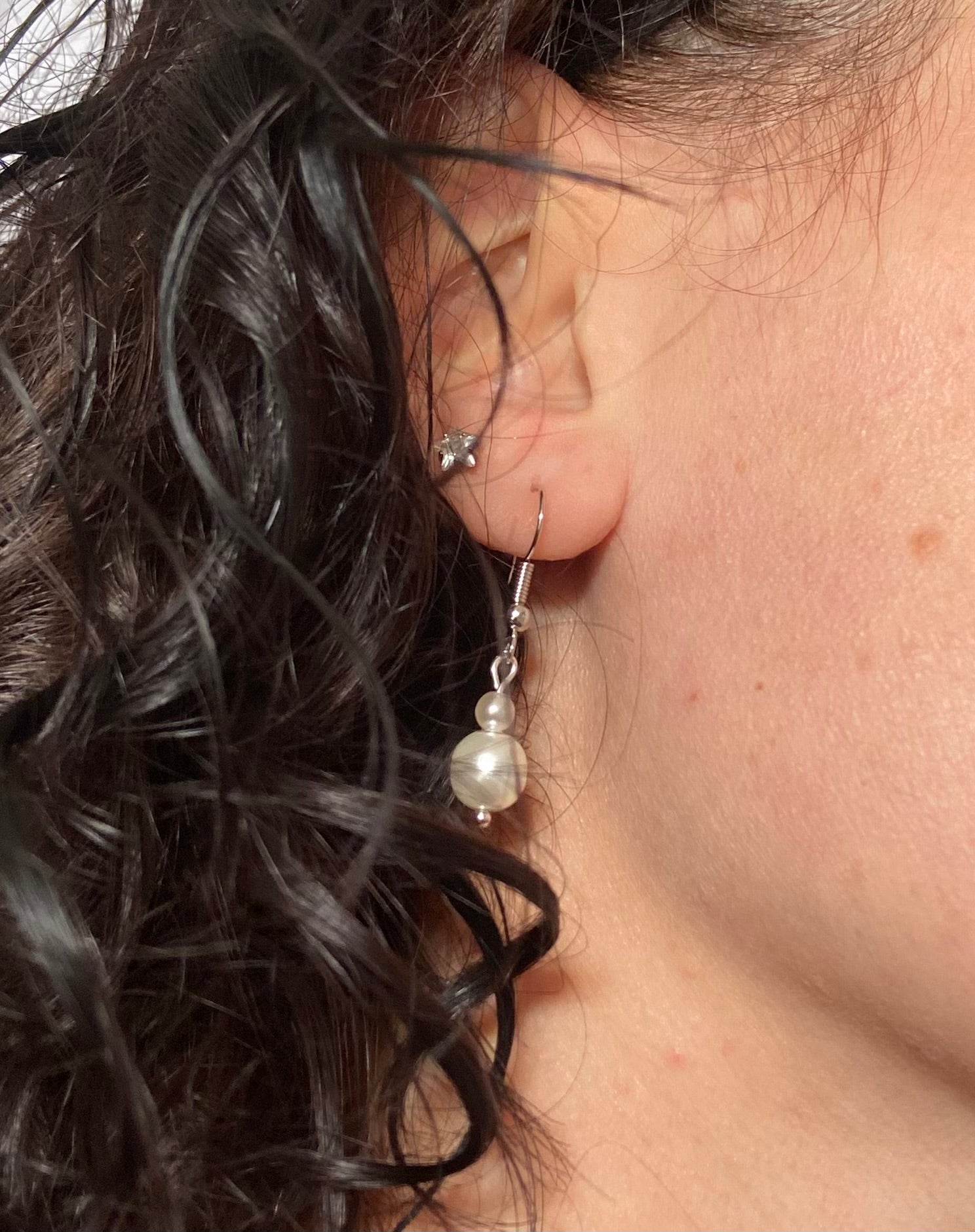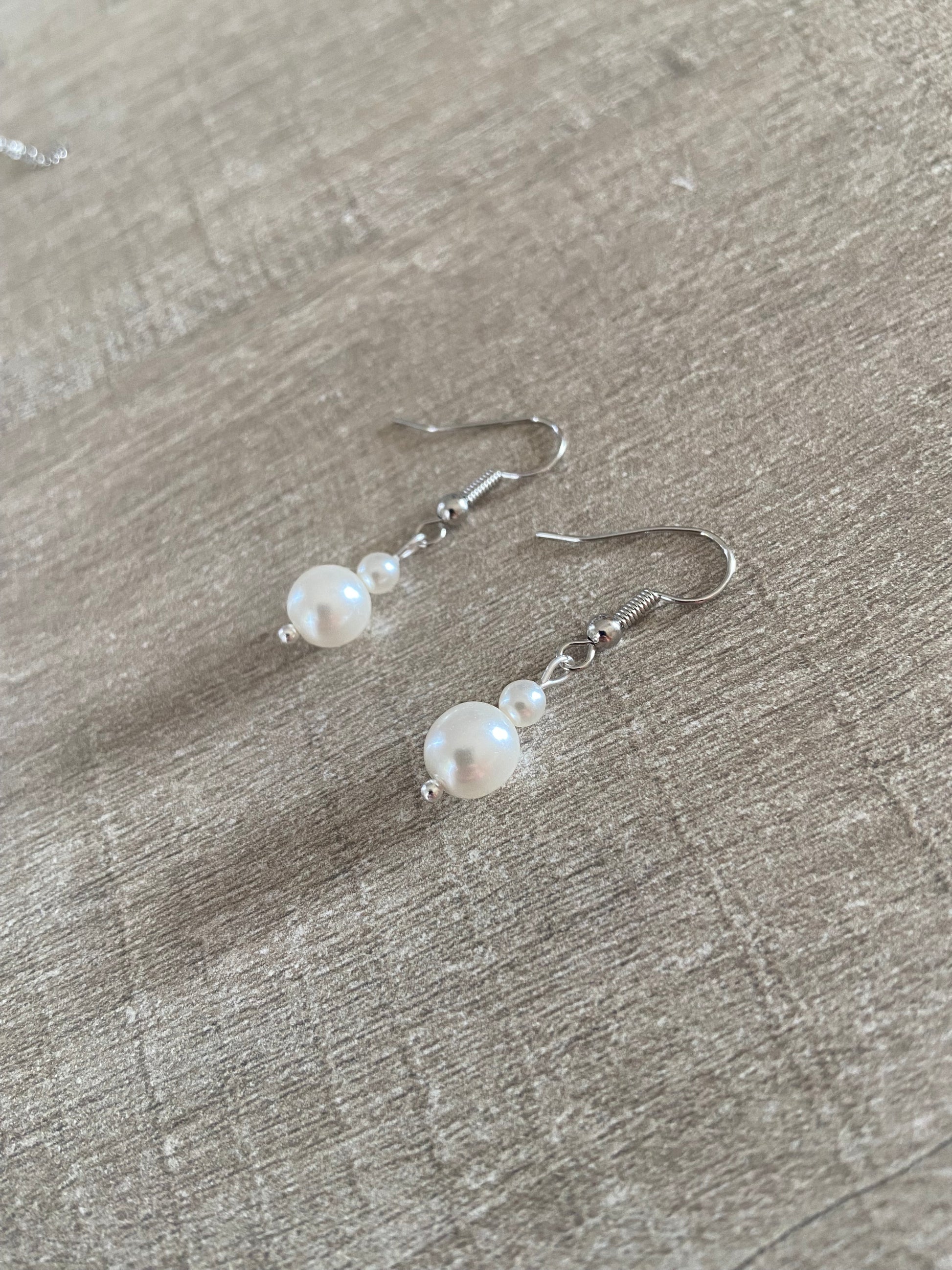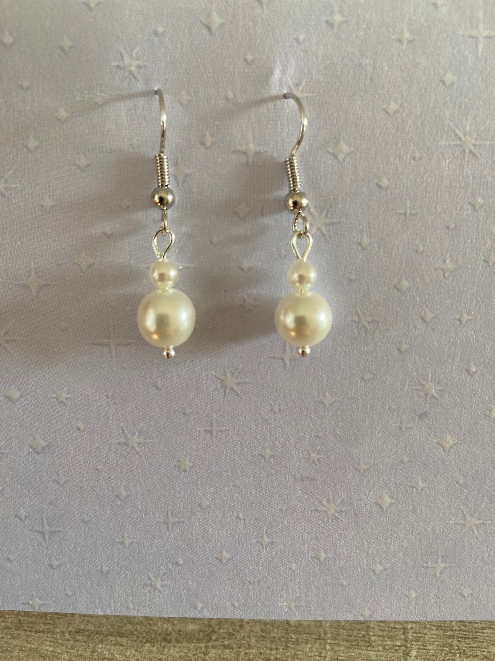 Découvrez cette jolie paire de boucles d’oreilles composées de perles nacrées blanches sur des crochets argentés.