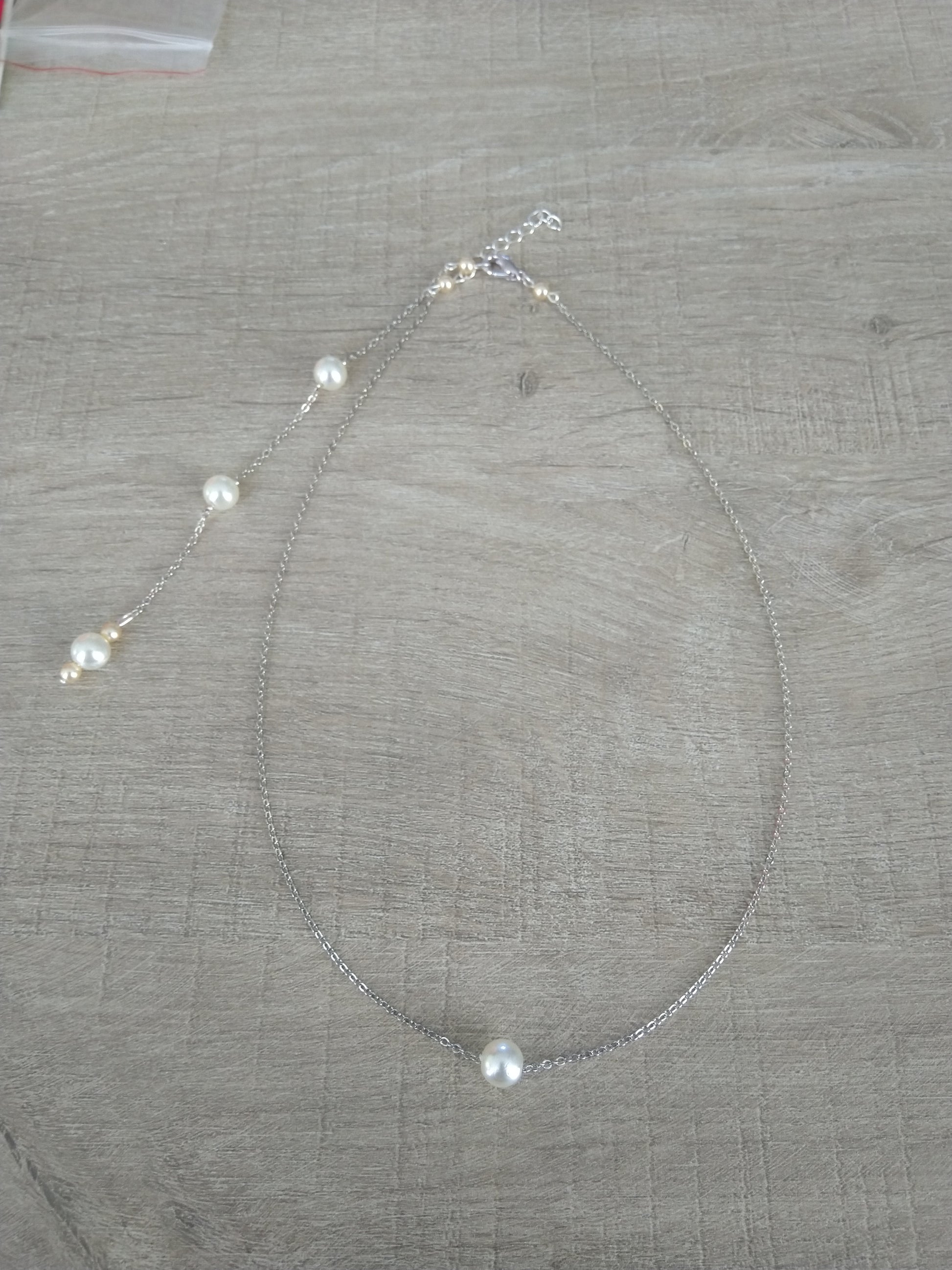 Découvrez ce joli collier composé de perles nacrées ivoires sur une fine chaîne argentée.