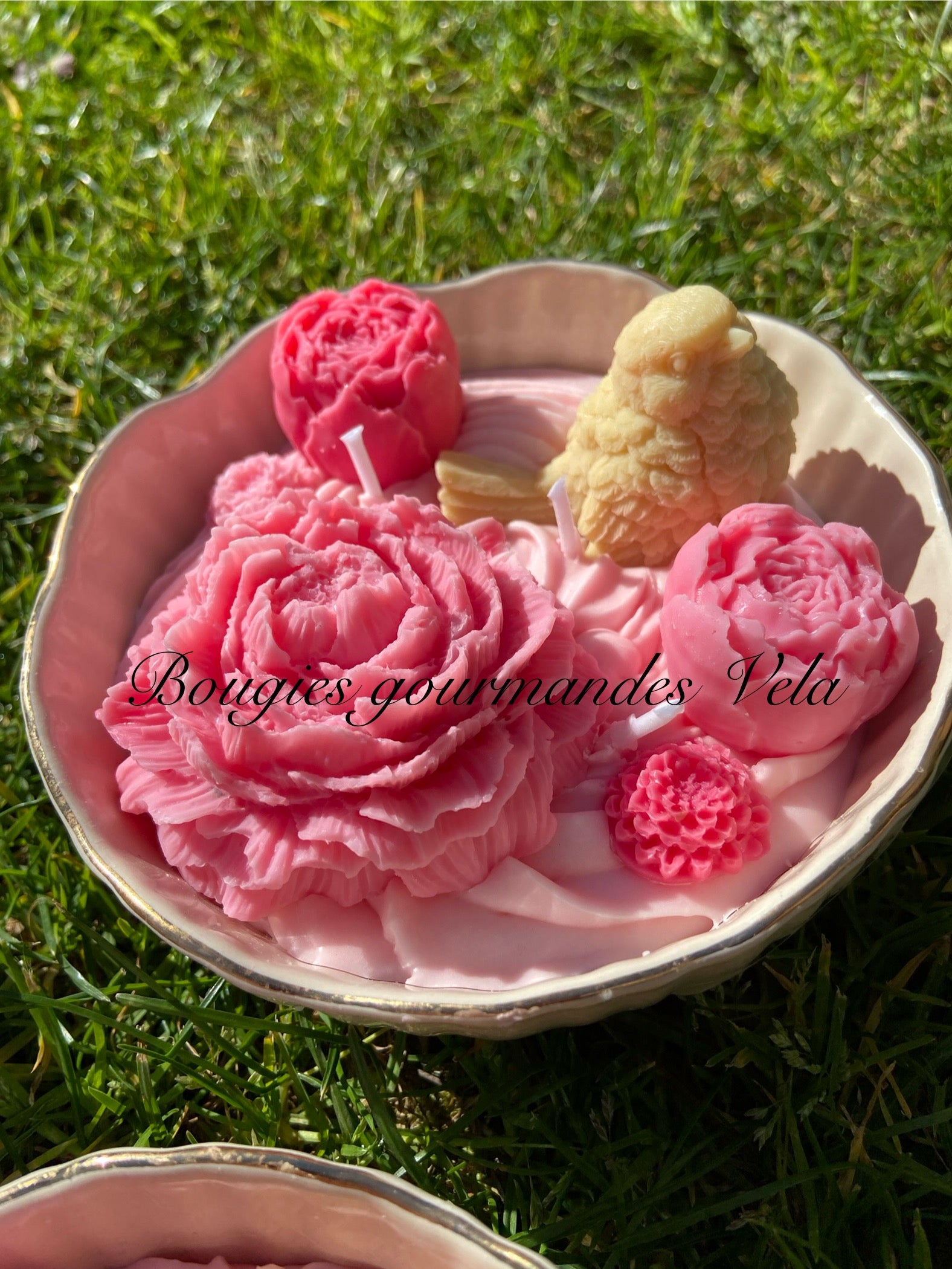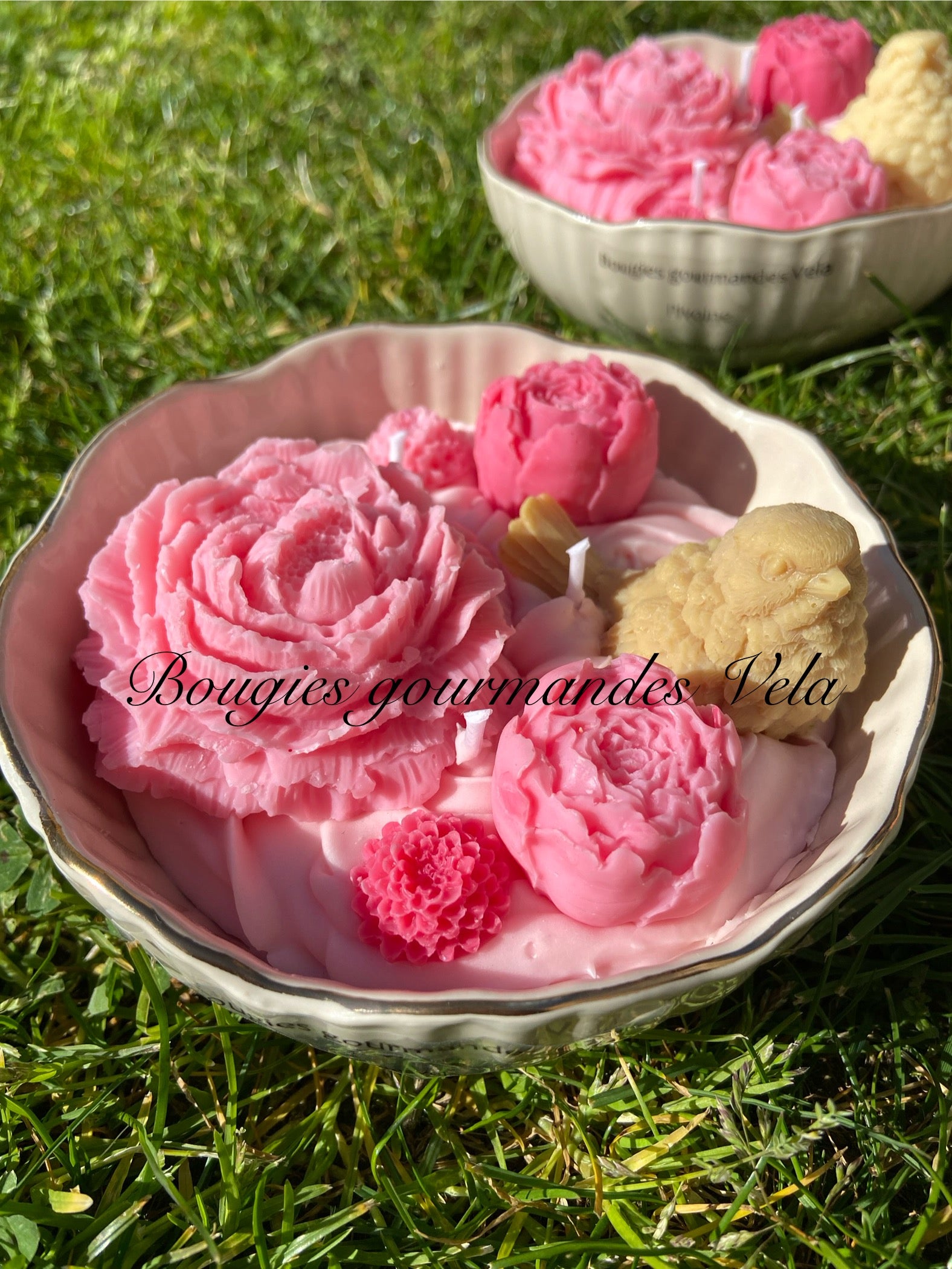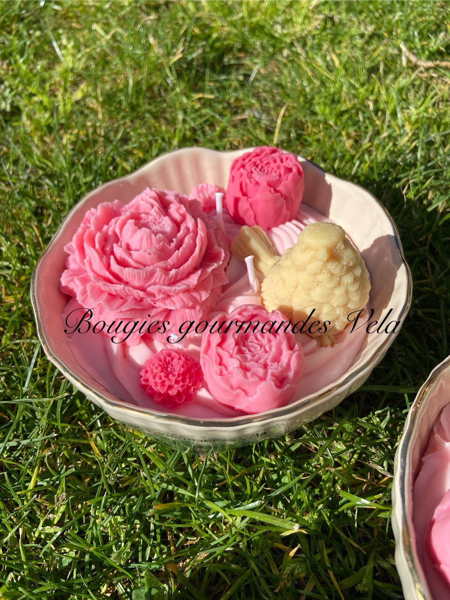 Grande Bougie fleurs Bougie fleurie Bougie parfumée pivoine Bougie naturelle Bougie végétale Idée cadeau